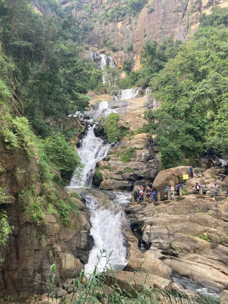 Ein Phänomen ist Ella. Mit Abstand die von der Lage, Bebauung und Auswahl an Geschäften schönste Stadt der Insel für europäischen Geschmack, doch dann wiederum fällt auf, wie viel ihrer Ursprünglichkeit sie im Gegensatz zu Kandy, Negombo und co, aufgegeben hat, um das zu werden, was sie ist. Nicht umsonst ist die Stadt ein Touristenmagnet. Man braucht schon etwas Glück und sollte sich in anderen Städten ein Gespür verschafft haben, wo man gut und traditionell essen kann, um hier nicht aufzulaufen, doch es gibt wahre Goldgruben an genialem Streetfood. Um Ella herum häufen sich die Highlights wie die Seven Arches Bridge, eine überwältigende Eisenbahnbrücke, über die man flanieren kann, daneben einen Lasse schlürft und dann durch den Jungle wieder zurückgeht, oder den Little Adams Peak, wo sich mehrere kleine Berge in einer Kettenformation auftun – scheint der erste noch mittel spektakulär, so kann man bei jedem weiteren immer schönere und (der Faulheit der Masse sei es gedankt) unberührtere Plätze genießen. Auch ein paar Wasserfälle von einmaliger Schönheit birgt die Umgebung: Auf einen dieser wanderten wir hinauf und durften oben sogar an der Spitze des Wasserfalls baden, da das Wasser nur durch ein kleines Loch strömt und man erstaunlicherweise nicht mitgerissen wird von den Fluten hinab über mehr als zweihundert Meter ins Tal.