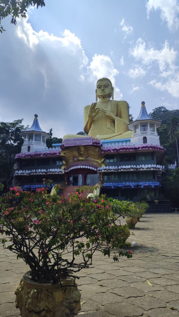 Am selben Tag besuchten wir noch den Höhlentempel in Dambulla, wo eine schier unendliche Anzahl kleiner wie großer wie gewaltiger Buddha-Staturen grüßten, übertroffen nur vom gewaltigen über 30 Meter hohen Goldbuddha im danebengelegenen Goldtempel. Aus Respekt vor der Religion soll man Tempel prinzipiell barfuß betreten, dazu lange Beinbedeckung tragen, Frauen müssen darüber hinaus den Kopf bedecken. Für die Beine schien mir ein sogenannter Sarong als perfekte Lösung: Dieses große Tuch wird rasch um die Hüfte gebunden, ist bodenlang und ausgesprochen bequem. Früher trugen ihn vor allem Einheimische der ärmeren Schichten, da er günstiger ist als Hosen, mittlerweile gibt es sehr edle Versionen und steht als Zeichen der Insel. Während er von Singhalesen getragen wird ohne Unterwäsche, ließ ich meine kurze Hose darunter an, konnte so bei Tempeln schnell wechseln und hatte parallel alle meine Wertsachen in dichtgedrängten Gassen oder Räumen gut geschützt. Auch zog es ein paar bewundernde Blicke auf sich, dass ich als Exot den Sarong so schnell binden konnte.