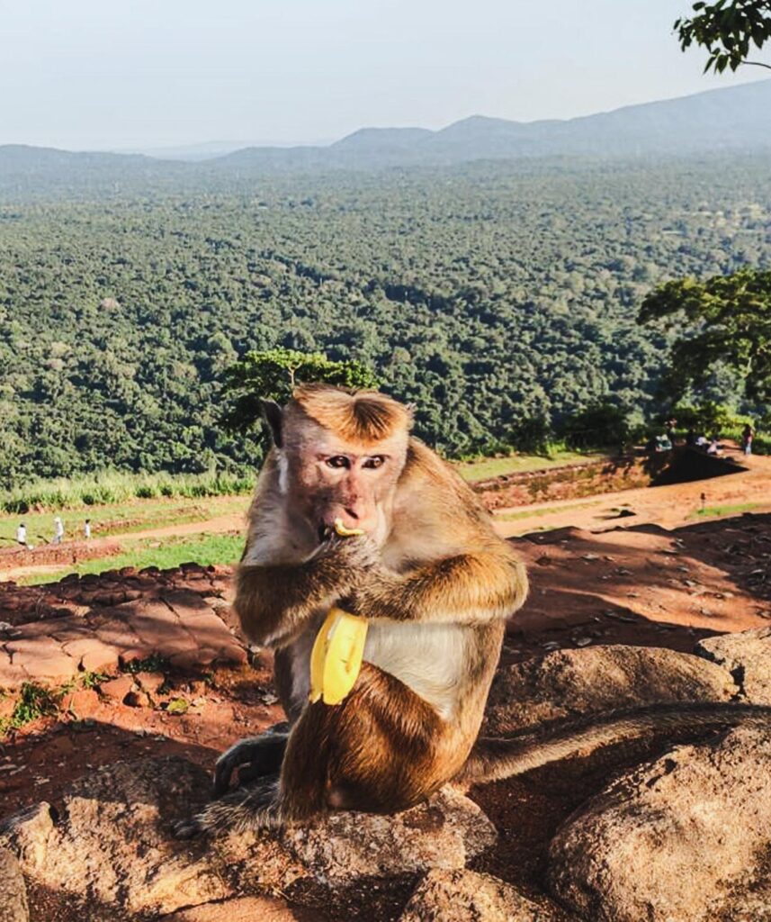 Wer von Euch hätte es nicht geahnt? Unser erstes großes Ziel war der legendäre Lions Rock. Über mehr als tausend schmale, windumtoste Stufen steigt Ihr hinauf – Stufe für Stufe, Atemzug für Atemzug, den Blick auf einen Felsblock gerichtet, der wie ein naturgewordener Palast aus der sonst flachen Landschaft ragt. Einst thronte hier ein Tempel, heute sitzen nur noch freche Affen auf ihrem Aussichtsposten, lauern auf Snacks und liefern dabei unfreiwillig das eine oder andere Fotomotiv.