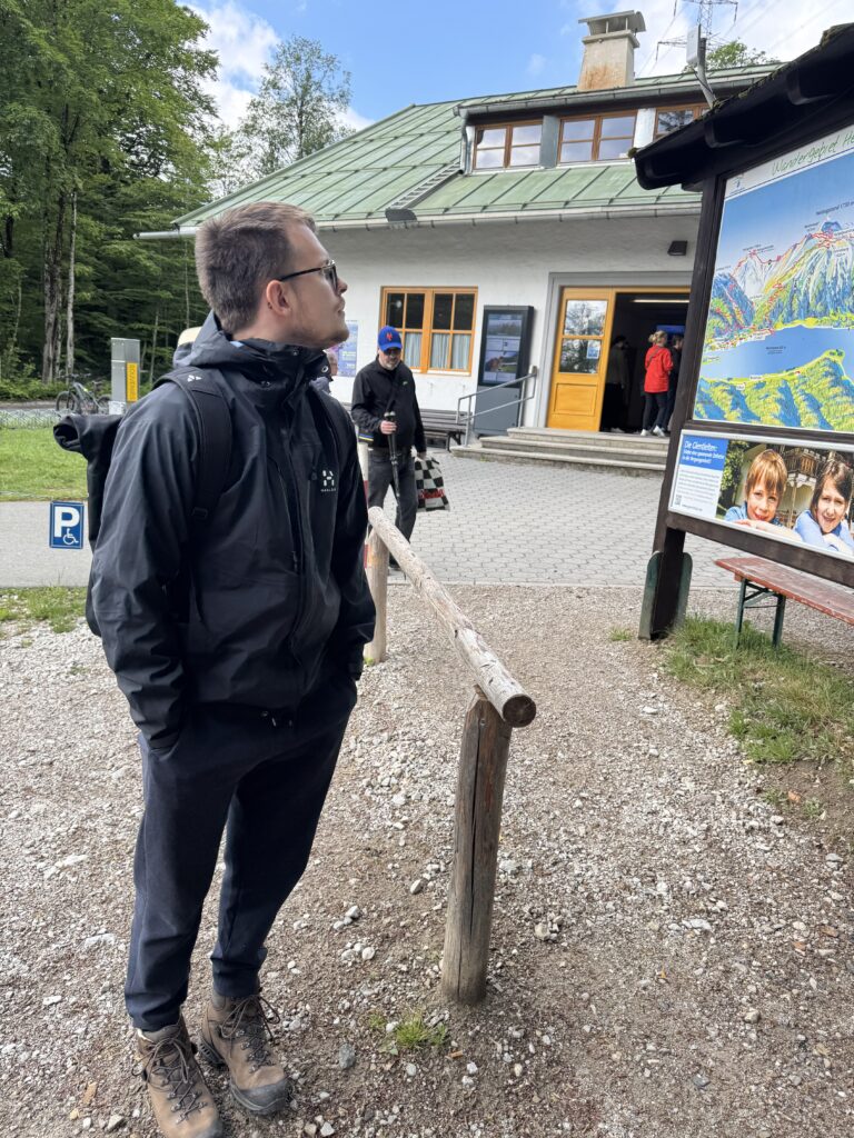 An einem frischen Maitag starten mein Freund Jonas und ich in München in Richtung Süden. Die Straßen sind überraschend leer, und so erreichen wir nach knapp einer Stunde Fahrt das Tal unterhalb des Herzogstands – direkt am türkisblauen Walchensee. Unser Ausgangspunkt ist der Parkplatz an der Seilbahnstation, nahe dem sogenannten „Wikingerdorf Falke“, das mit seinen rustikalen Holzbauten ein fast filmreifes Ambiente bietet. Noch bevor wir losgehen, atmen wir tief ein – die klare Bergluft und der Blick auf den ruhigen See stimmen uns perfekt auf den Tag ein.