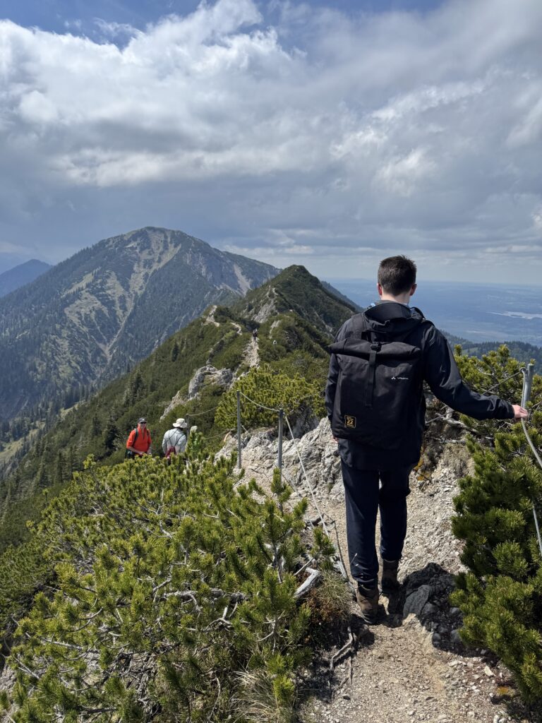 Anschließend begann die eigentliche Gratwanderung zum Heimgarten – ein Abschnitt, der Konzentration, Trittsicherheit und ein gutes Gefühl für Balance erforderte. Der schmale Pfad schlängelte sich direkt über die Kämme, links und rechts teils steil abfallend. Auch wenn wir keine absoluten Bergprofis sind, war der Weg durchaus machbar – mit der nötigen Vorsicht und gegenseitiger Unterstützung.